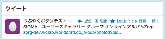 ここから〜ここまでと区切ってあるのでわかるかと思います。 万が一の為に、ファイルを添付しておきます。 このTweetButtonからはフォト投稿者のフォト画面へと遷移されるように設定し、TweetButtonを英語表記、 SIGMA ユーザーズギャラリーからの投稿という設定になっています。